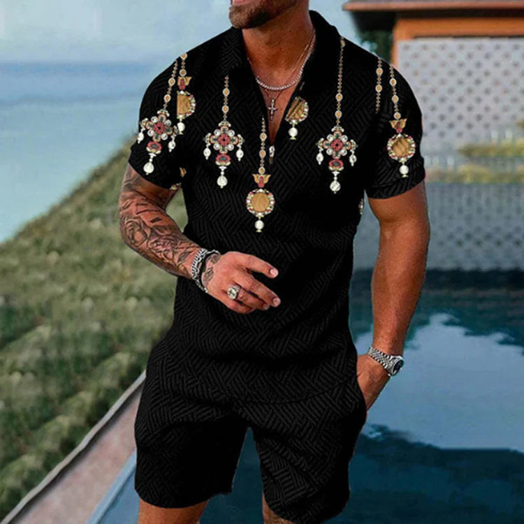 Gemstone Pendant Polo Shirt And Shorts Co-Ord