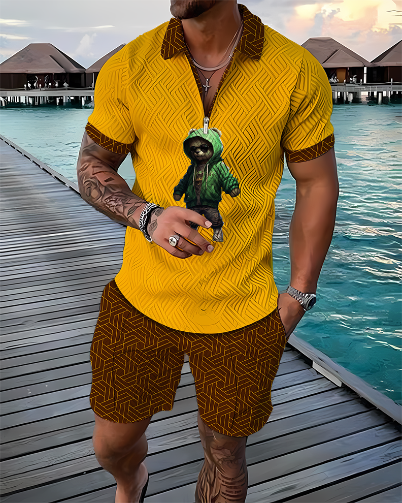 Hoodie Bear Polo Shirt And Shorts Co-Ord