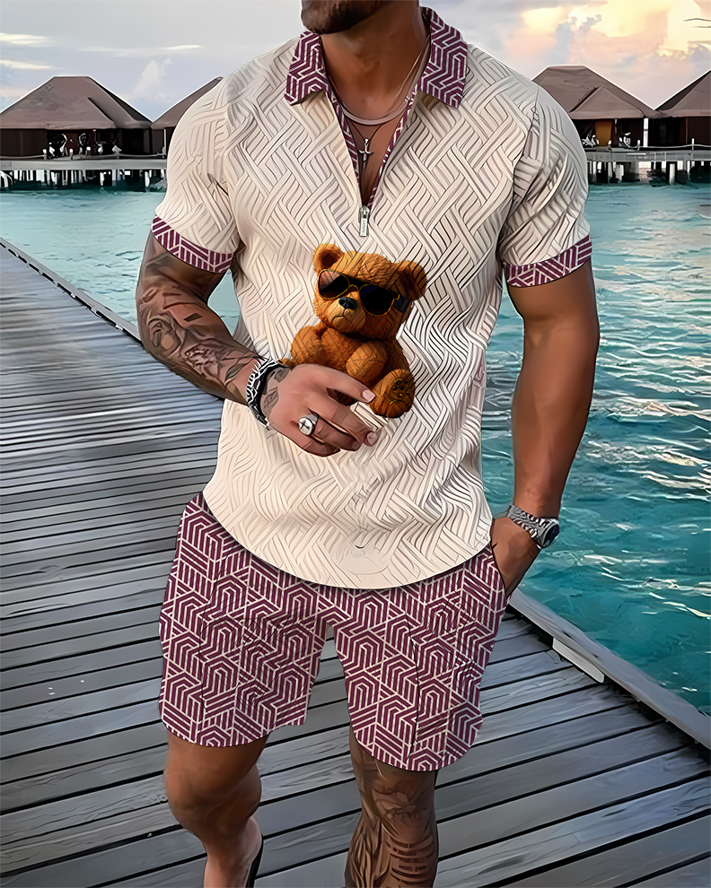 Sunglasses Bear Polo Shirt And Shorts Co-Ord